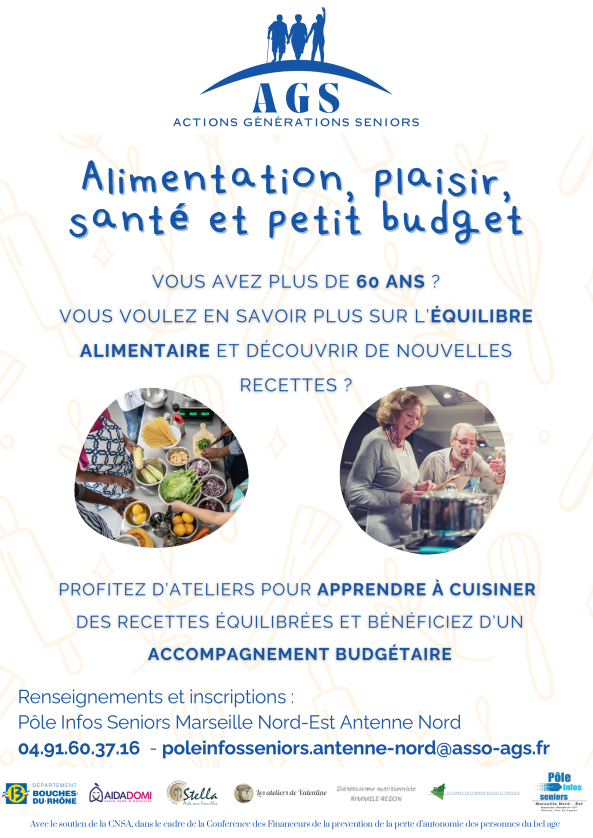 L'action Alimentation, plaisir, santé et petit budget a réuni des seniors et des aides à domicile lors de cinq sessions de quatre ateliers dans les 12ème et 13ème arrondissements de Marseille et a fini l'année avec un grand repas de clôture.